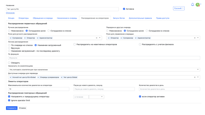 Автоматическое распределение диалогов среди ваших сотрудников и бизнес-юнитов любой сложности.